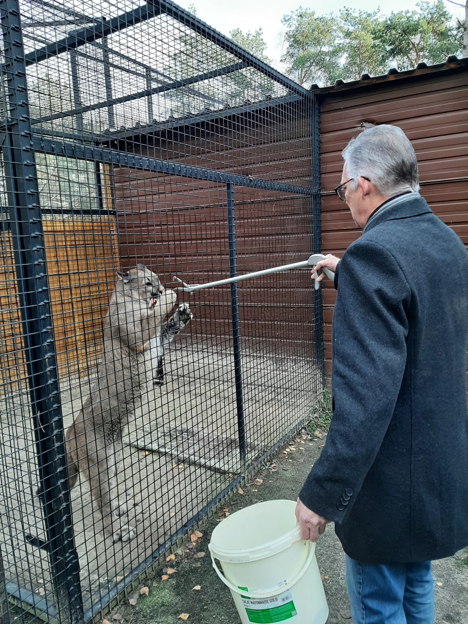 Herr Feiler freute sich besonders über die neu gestaltete Puma-Anlage und ließ es sich auch nicht nehmen, die 3 Kater mit Rinderhappen zu verwöhnen. Gleichfalls wurde er über das Vorhaben für ein größeres Affenhaus unterrichtet und begrüßte dies als weiteren Schritt zur zeitgemäßen Tierhaltung in Germendorf.