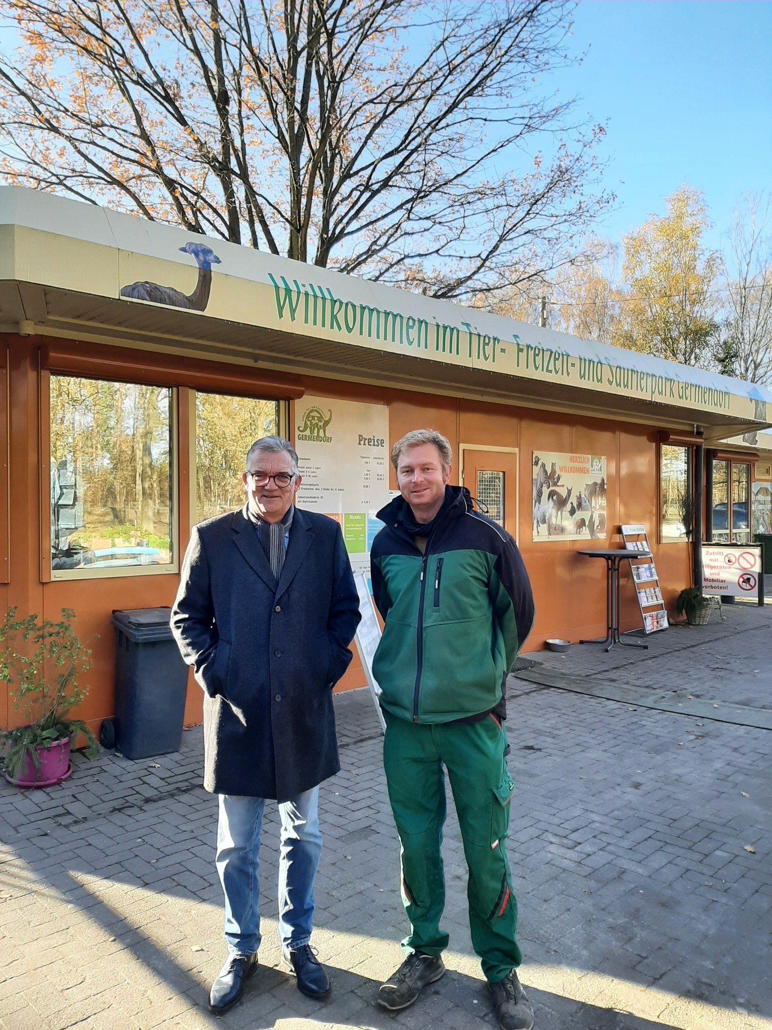 Am vergangenen Mittwoch nutzte Bundestagsabgeordneter Uwe Feiler (CDU) die Gelegenheit, sich auf einem Rundgang mit dem Leiter des Tier-, Freizeit- und Saurierparks aus erster Hand über die jüngsten Entwicklungen in der beliebten Freizeiteinrichtung in Oberhavel (ein Teil seines Wahlkreises), Pläne und aktuelle Herausforderungen berichten zu lassen.