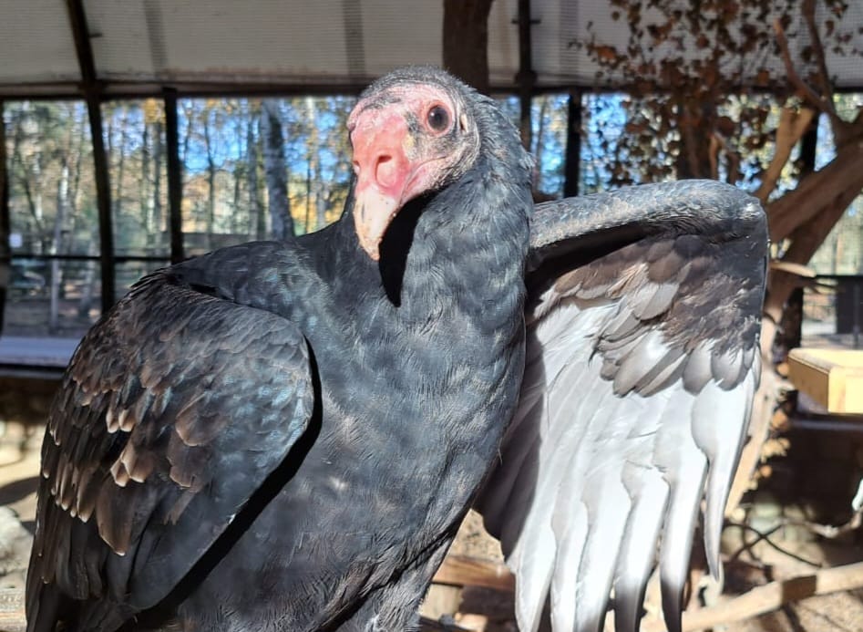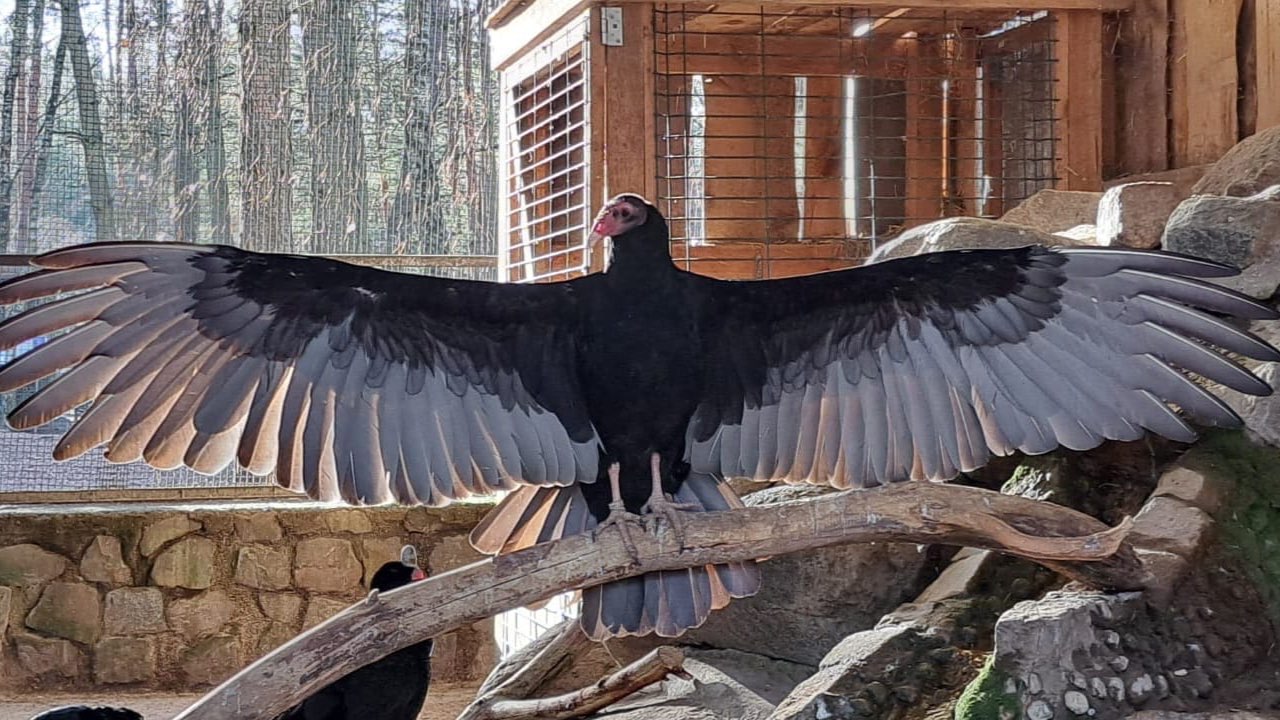 Wenn sich hier und da bereits die ersten Frühblüher aus der Deckung wagen, spüren gerade auch unsere gefiederten Freunde, dass sich der Winter langsam dem Ende zuneigt. Sehr genau registriert ihr Organismus die stetig etwas länger werdende Tageslichtzeit, was wiederum hormonelle Veränderungen im Vogelorganismus auslöst, die den Balz- und Bruttrieb langsam aber sicher stimulieren. Und so freuen sich auch Vertreter wie der Truthahngeier ganz besonders über die derzeit sporadischen Sonnenstrahlen und breiten dann ihre Schwingen weit zum Sonnenbaden aus, bei dem wohlige Wärme und wichtiges UV-Licht getankt werden und ganz nebenbei für unsere Besucher die schon recht eindrucksvolle Spannweite dieser kleinen Geierart aus Nord- und Südamerika sichtbar wird.