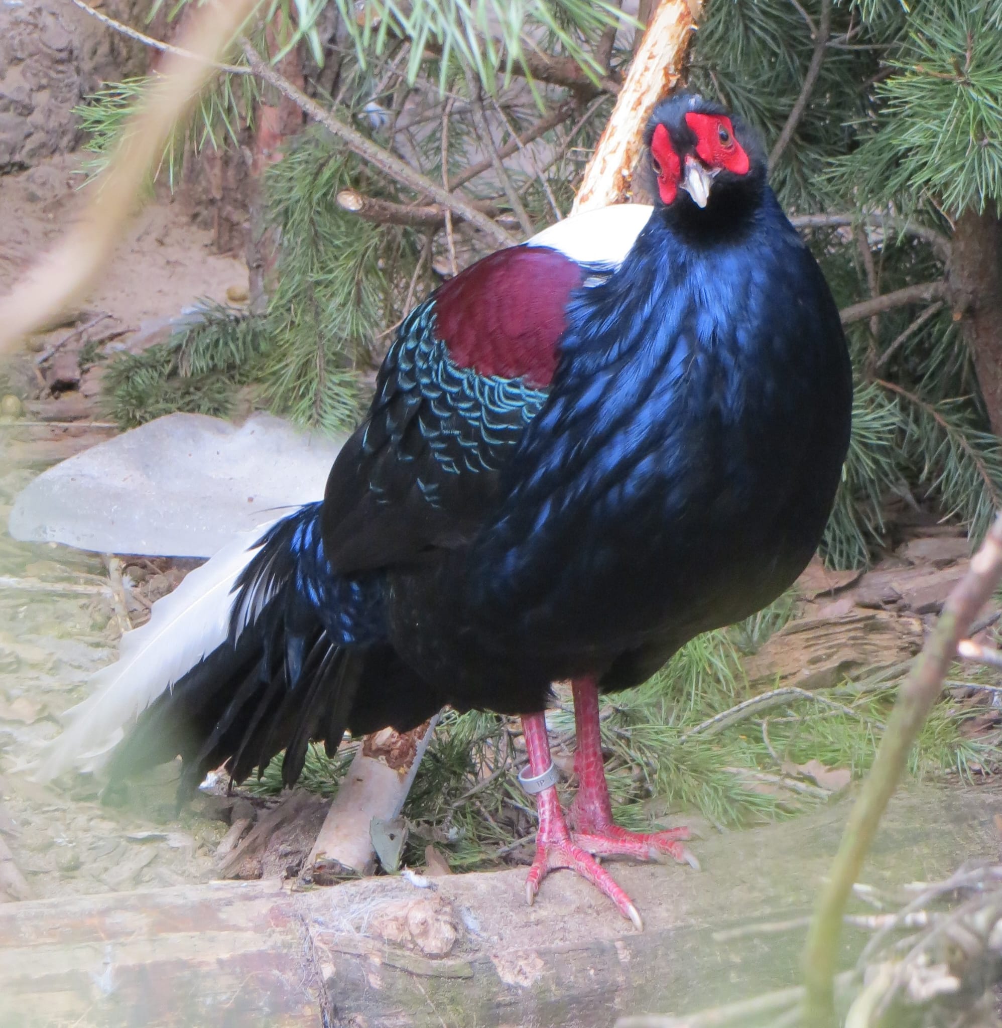 Während unsere frechen Diamantfinken neugierig den Jahreszeitenverlauf aus dem gut geheizten Australienterrarium heraus verfolgen, ist der Hahn der Swinhoe-Fasane in der Schneehasenanlage ganzjährig an der frischen Luft weil winterhart und somit unmittelbar dran am Umschwung der Elemente. So kommt nun auch er in Balzstimmung, was sich auch an den anschwellenden, sich intensiv rot färbenden Hautarealen in seinem Gesicht ablesen lässt.