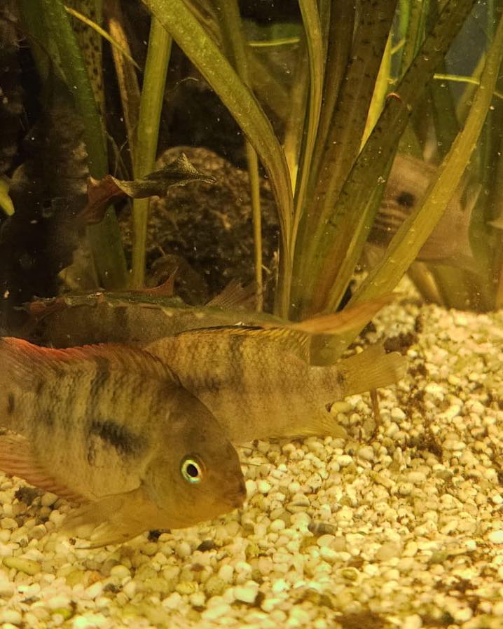 Wiederum unterstützte uns das Aquarium des Zoo Leipzig, dem wir dafür sehr dankbar sind, mit mehreren Paaren von 2 schönen Arten Amerikanischer Zwergbuntbarsche als Anfangsbesatz. So können unsere Besucher nun zum einen Sajica-Buntbarsche kennenlernen, was sonst nur in 3 weiteren Schauhaltungen in Deutschland möglich ist.
