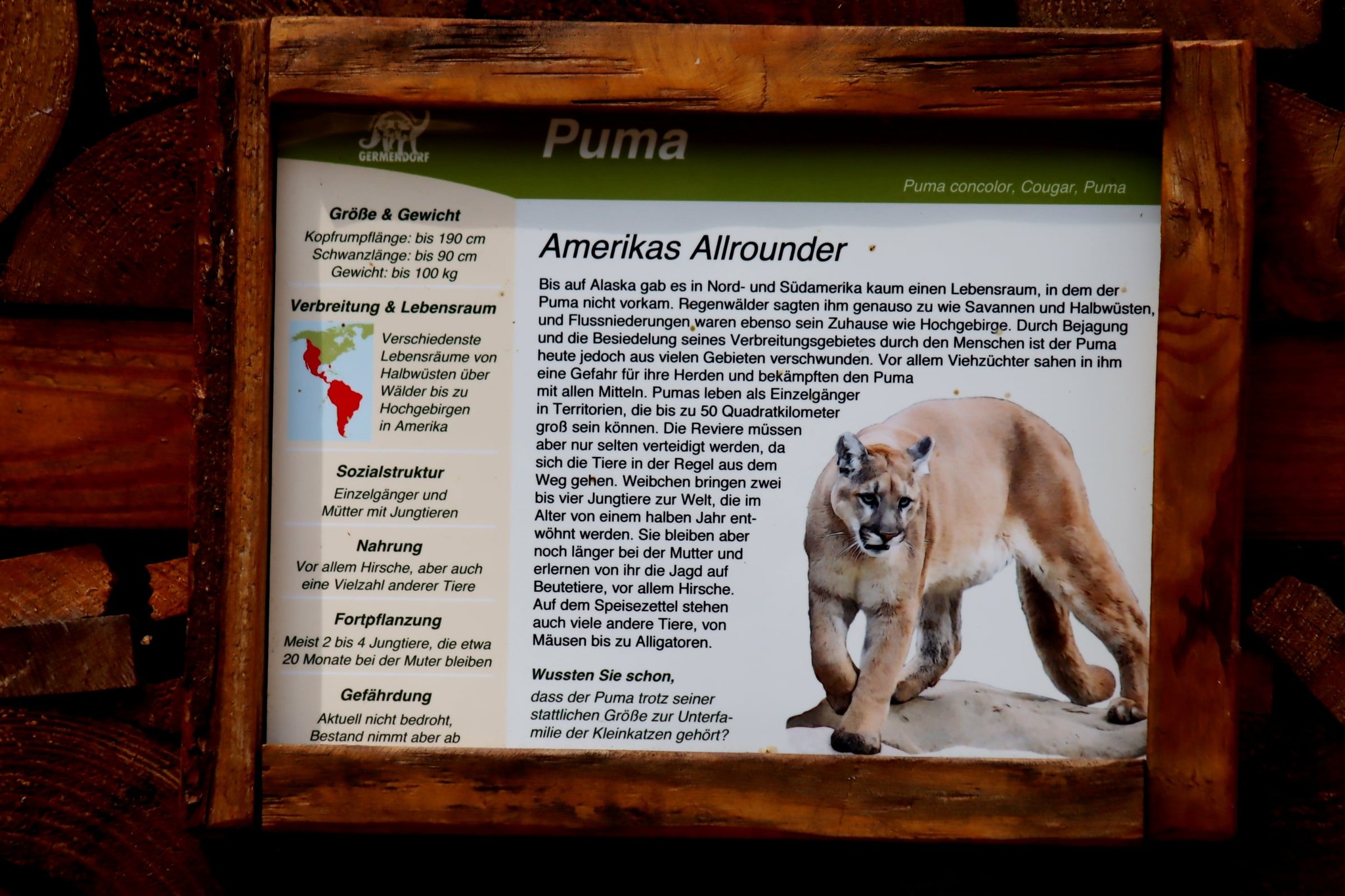 Aber dennoch, in vielerlei Hinsicht, hat sich der Tierpark Germendorf in positiver Weise verändert. Dazu gehört auch das neue Puma-Gehege, das echt ein Hingucker in diesem weitflächigen Tierpark ist. Hier gibt es viele Möglichkeiten der Beobachtungen dieser tollen Kleinkatzen aus Amerika. ![]()