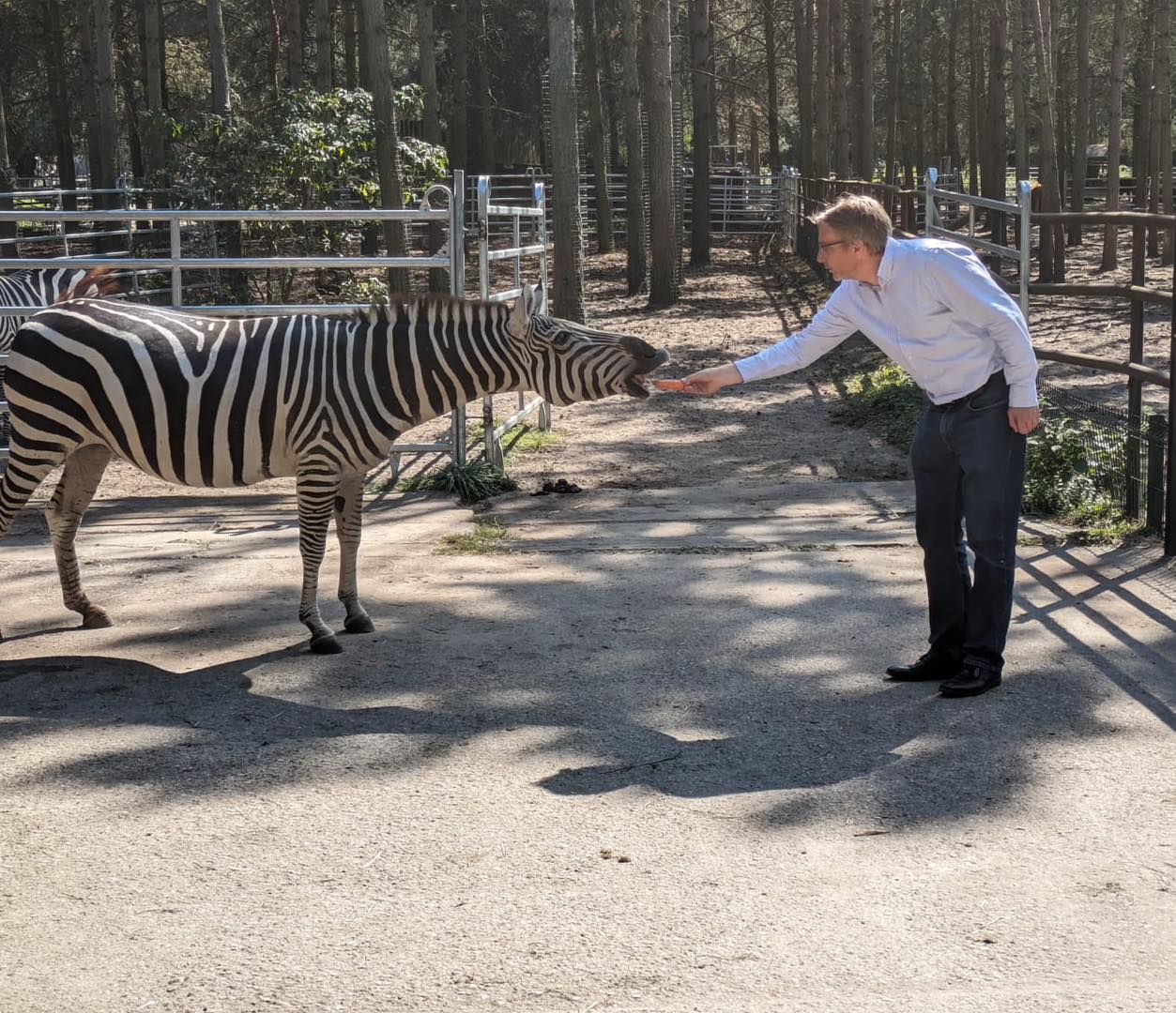konnte der Pate hier bei den gestreiften Einhufern, die naturgemäß Neuem gegenüber stets misstrauisch sind, Vertrauen aufbauen und auf Armlänge herankommen.