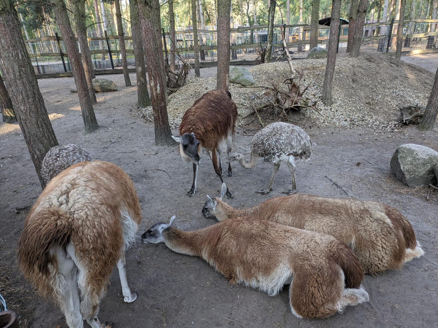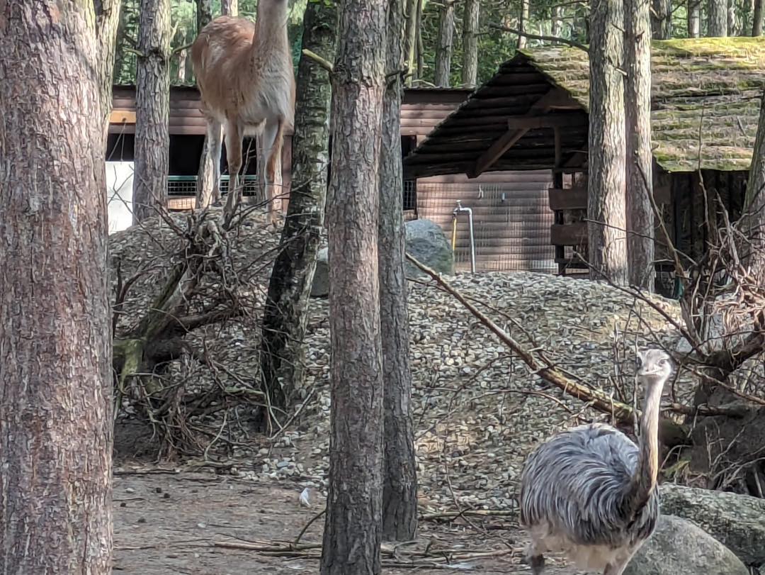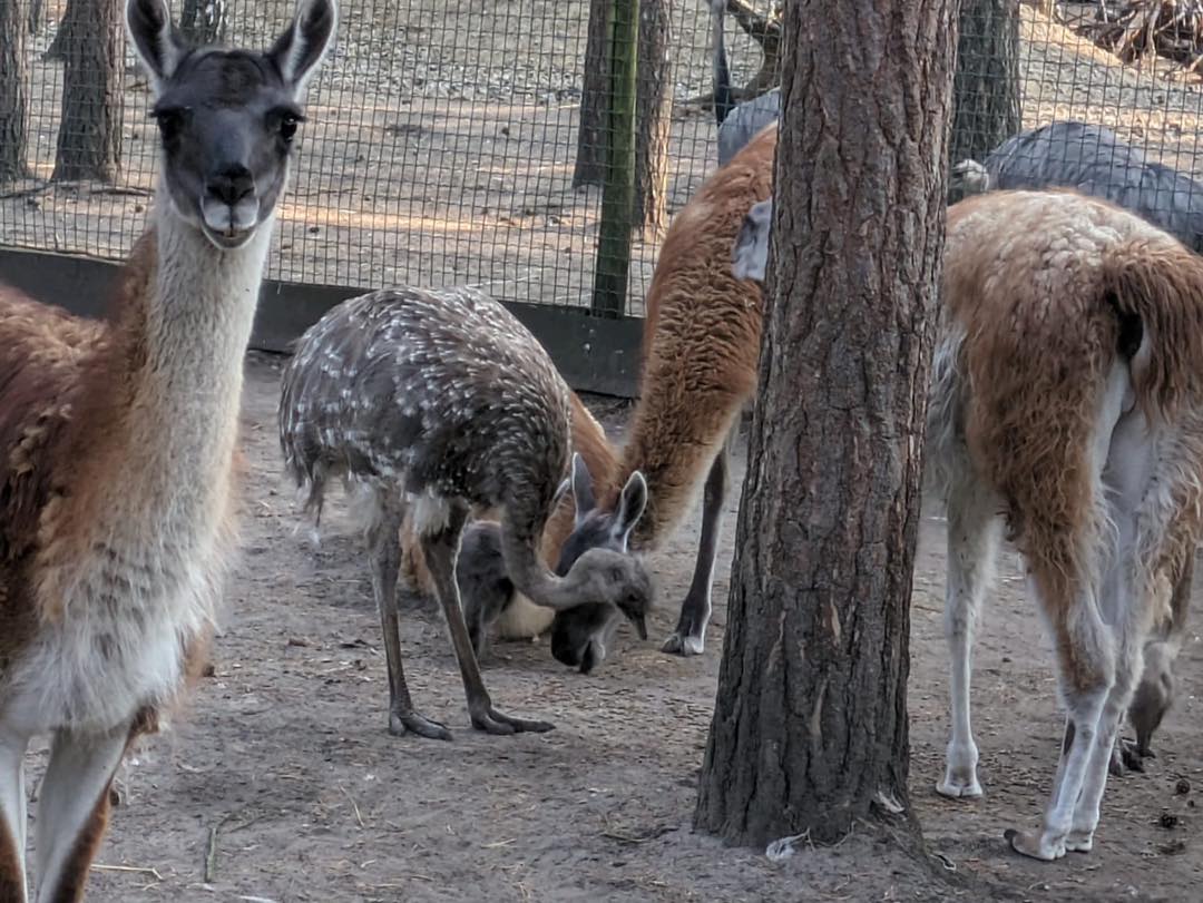 Eine vielfach seit Jahrzehnten erprobte „Mischung“ sind Neuweltkamele und südamerikanische Laufvögel. Seit 2 Wochen teilen sich bei uns nun Guanakos, Darwin- und Große Nandus die zuvor zweigeteilte Anlage. Erwartbar „stürmisch-dynamisch“ brachten die Guanakos in den ersten Tagen die Nandus ordentlich durcheinander und damit ins Rennen, was der beobachtende Tiergärtner immer mit Sorgenfalten zur Kenntnis nimmt, da die Laufvögel, einmal in Panik, durchaus zu kopfloser Flucht neigen, so dass in dieser Startphase dann auch gelegentlich regulierend eingegriffen werden muss. Genauso erwartbar legte sich aber diese spielerische Neugier nach den ersten Tagen komplett, eine Gewöhnung trat ein, die Nandus waren als neue Spielobjekte nun nicht mehr spannend.